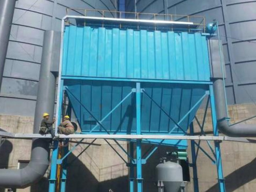 YMD-I型低壓噴吹脈沖除塵器由濾袋組件、導(dǎo)流裝置、脈沖噴吹系統(tǒng)、除灰系統(tǒng)、控制系統(tǒng)、離線保護(hù)系統(tǒng)、箱體等組成。脈沖布袋收塵器含塵氣體由導(dǎo)流管進(jìn)入各單元室,在導(dǎo)流裝置的作用下,大顆粒粉塵被分離后直接落入灰斗,其余粉塵隨氣流均勻進(jìn)入各倉室過濾區(qū),過濾后的潔凈氣體透過濾袋經(jīng)上箱體、提升閥排風(fēng)管排出。當(dāng)過濾袋表面粉塵達(dá)到 厚度時,濾袋內(nèi)外的壓差就會逐漸增加;當(dāng)壓差達(dá)到設(shè)定值(由壓差儀控制時久來自貯氣罐的空氣就會迫使脈沖閥的膜片自動打開,輸送 量的空氣,通過風(fēng)管由噴嘴噴入濾袋內(nèi),進(jìn)行在線自動反吹清灰,抖落濾袋上的粉塵。落入灰斗中的粉塵經(jīng)卸灰閥排出后,利用輸灰系統(tǒng)送出。